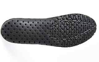 Um den Wasserabfluss zu fördern und zu verhindern, dass Wasser stagniert, ist die Einlegesohle perforiert.