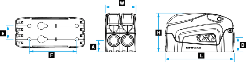 | DC1 | L | W | H | A | B | E | F | Gewicht |